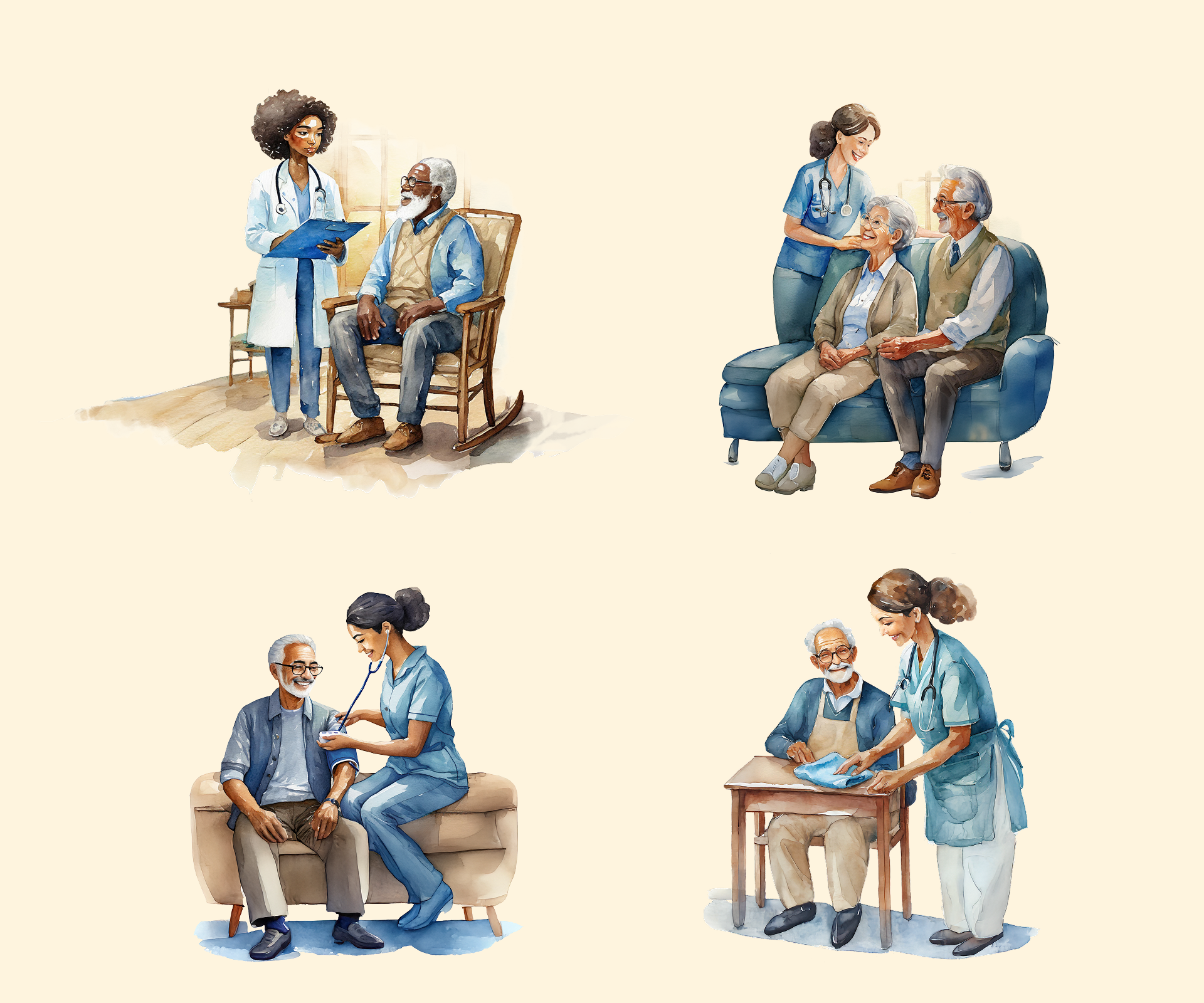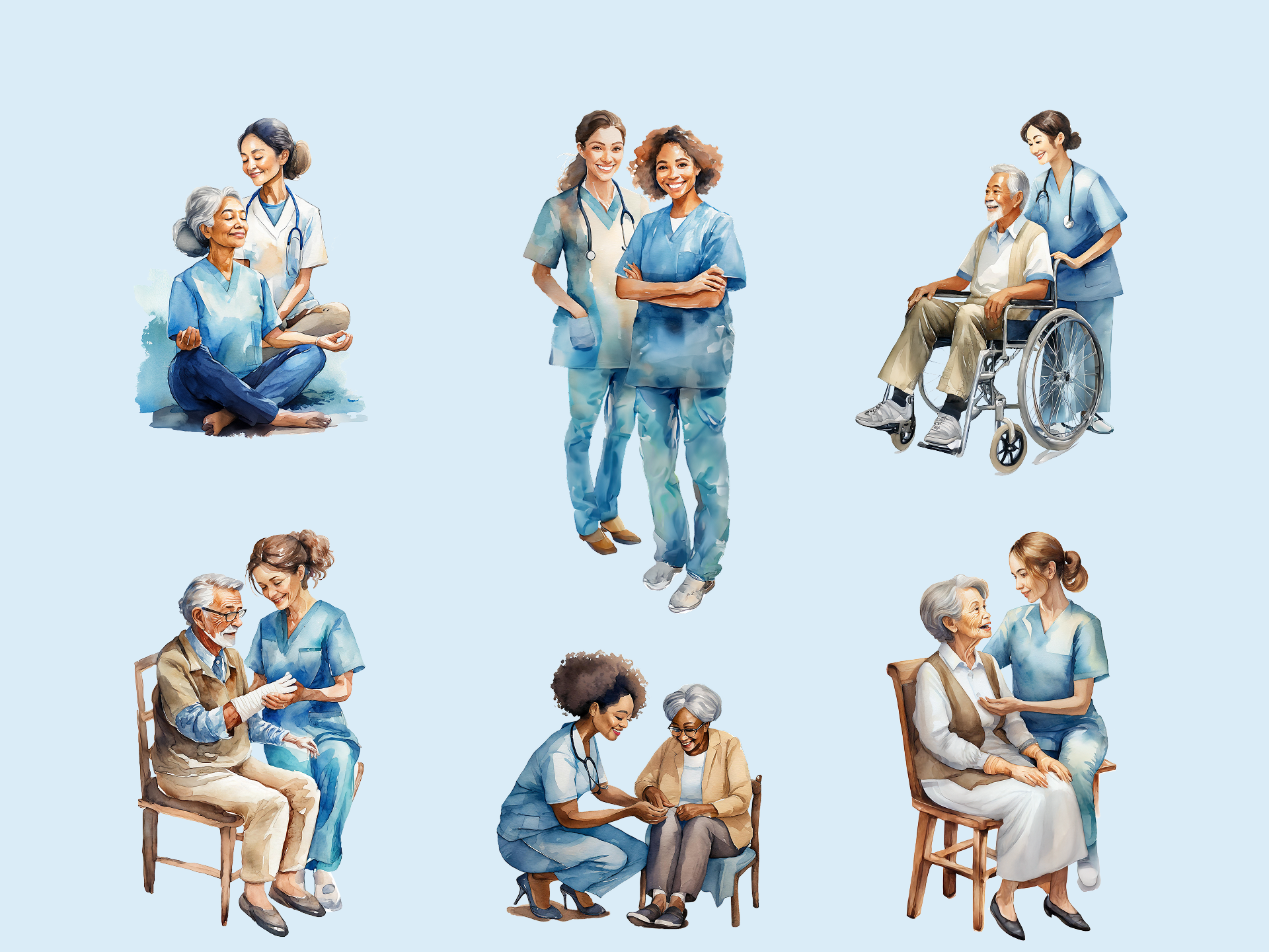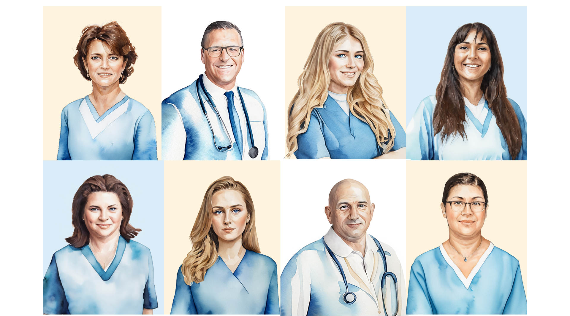 Each portrait is more than just an image — it’s a story of commitment, empathy, and connection. Through soft colors and delicate brushstrokes, these illustrations capture not only our team’s professionalism but also the compassion that defines everything we do.